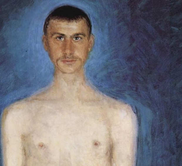 A férfialak ingerlő fegyelmezettsége – két leeresztett karját nyílegyenesen álló testéhez szorítja, valamint a test alsó felét szemérmesen eltakaró fehér lepel androgün jelleget kölcsönöz a festőnek. Ezzel szemben az utolsó önarcképen már sem a fegyelmezettségnek, sem a szemérmességnek nincs semmi nyoma.